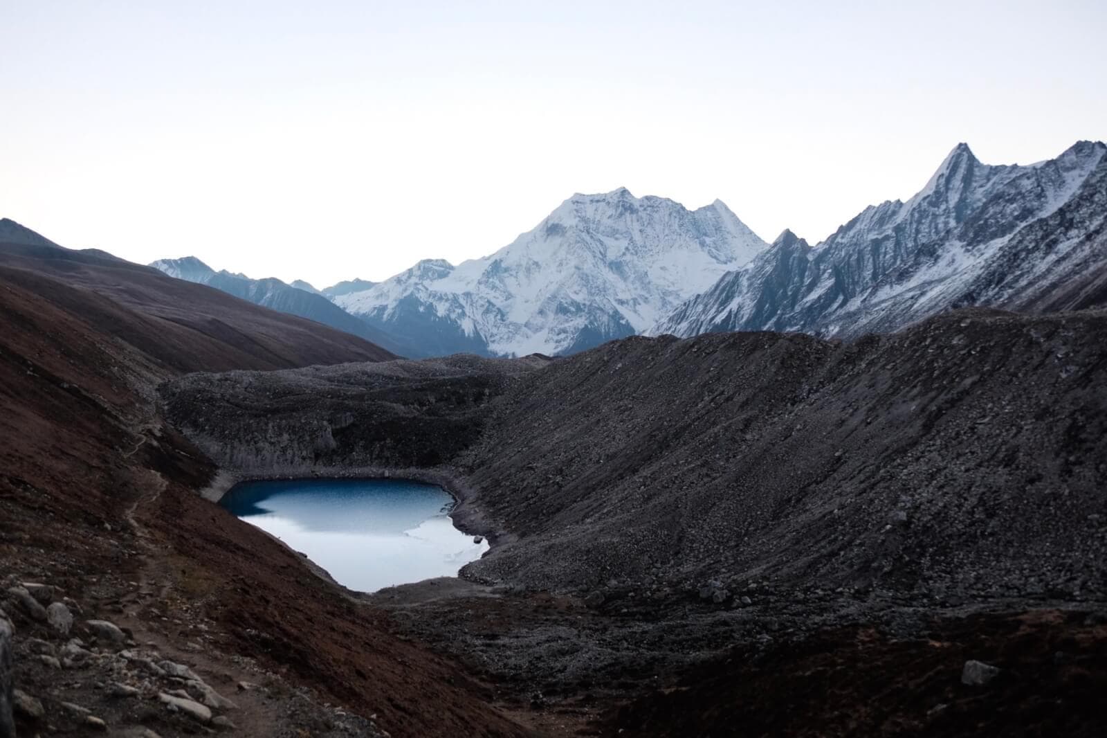 At the village of Samagoon, you will take a rest day – an essential opportunity to acclimatise to the increasing altitude and rest your legs before you tackle Larkya La Pass. On your “day off” you can hike up to Manaslu base camp or, as we did, take a less strenuous walk to the spectacular glacial Lake Birendra.